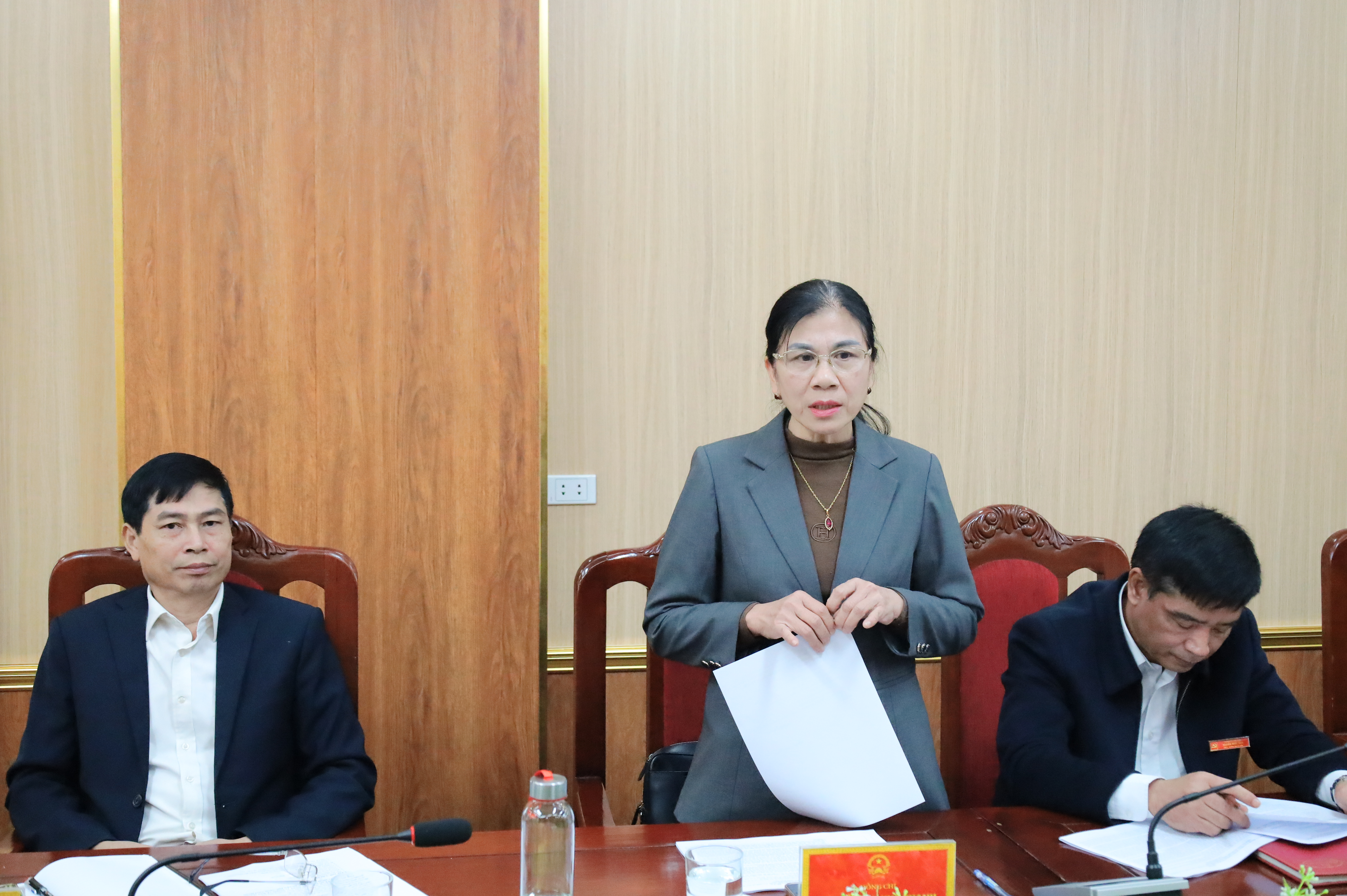 Đồng chí Nguyễn Thị Kim Thanh - Ủy viên BTV Huyện ủy, Trưởng Ban Tuyên giáo Huyện ủy, Giám đốc Trung tâm Chính trị huyện phát biểu tại hội nghị.