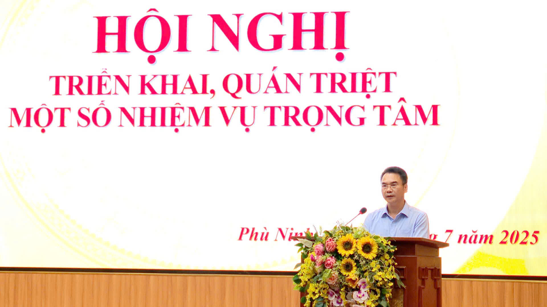(Phù Ninh)- Chiều ngày 8/7/2025, UBND xã phù Ninh tổ chức Hội nghị triển khai, quán triệt một số nhệm vụ trọng tâm. Đồng chí Nguyễn Đức Tài, Phó Bí thư Đảng uỷ - Chủ tịch UBND xã chủ trì hội nghị. Dự hội nghị có đồng chí Chu Đức Thắng – Phó bí thư Thường trực Đảng ủy; Đồng chí Lê Thành Sơn - Ủy viên BTV Đảng ủy – Phó chủ tịch HĐND xã; Đồng chí Hoàng Văn Luyện, Uỷ viên BTV Đảng uỷ - Phó Chủ tịch UBND xã, đồng chí Bùi Tuấn Long, Uỷ viên BTV Đảng uỷ - Phó Chủ tịch UBND xã; các đồng chí thành viên uỷ ban, lãnh đạo các phòng, đơn vị; các đồng chí Bí thư chi bộ, Trưởng khu dân cư trên địa bàn xã.