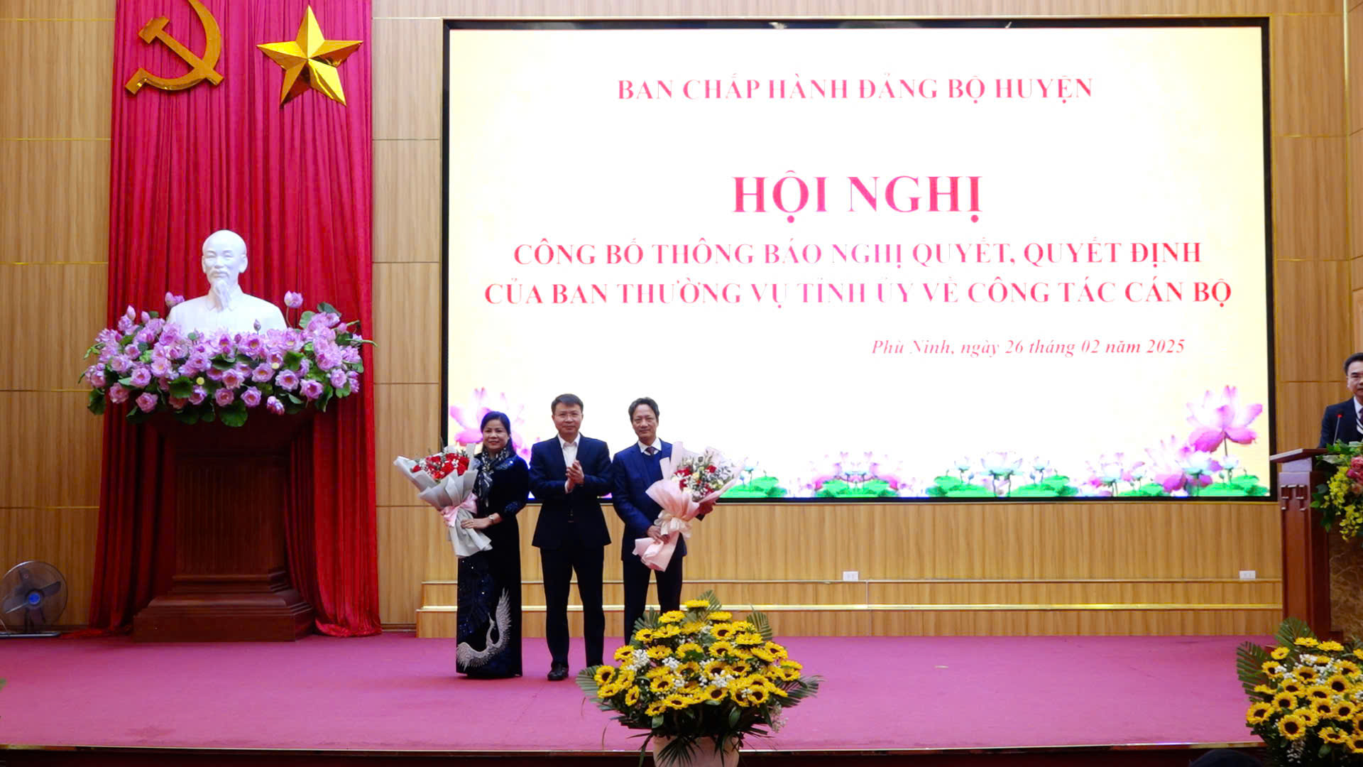 Đồng chí Bùi Đình Thi – Uỷ viên BTV Tỉnh uỷ, Trưởng Ban Tổ chức Tỉnh tặng hoa chúc mừng đồng chí Nguyễn Thị Tố Uyên – Tỉnh uỷ viên, Phó Bí thư Đảng uỷ các cơ quan Đảng tỉnh, nguyên Bí thư Huyện uỷ, Chủ tịch HĐND huyện Phù Ninh và đồng chí Ngô Đức Thịnh – Tỉnh uỷ viên, Bí thư Huyện uỷ Phù Ninh.