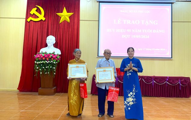 Tại buổi lễ, đồng chí Nguyễn Thị Kim Thanh, Ủy viên Ban Thường vụ, Trưởng ban Tuyên giáo Huyện ủy, Giám đốc Trung tâm Chính trị huyện đã trao tặng Huy hiệu 55, 50, 45, 40, 30 năm tuổi đảng cho 10 đảng viên, trong đó trao tặng Huy hiệu 55 năm tuổi đảng cho 2 đồng chí; Huy hiệu 50 năm tuổi đảng cho 3 đồng chí; Huy hiệu 45 năm tuổi đảng cho 1 đồng chí và trao Huy hiệu 40, 30 năm tuổi đảng cho 4 đồng chí. Nhân dịp này, các đồng chí lãnh đạo huyện và xã đã tặng hoa và quà chúc mừng các đảng viên. Đây là phần thưởng cao quý của Đảng, ghi nhận những đóng góp tích cực của các đồng chí đảng viên lão thành trong những năm hoạt động cách mạng của mình cũng như trong sự nghiệp đấu tranh giải phóng dân tộc và xây dựng chủ nghĩa xã hội, là niềm tự hào của đảng bộ xã và gia đình.