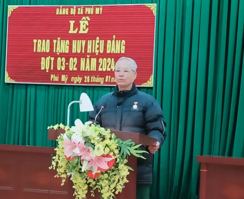 (Phù Ninh)- Ngày 26/01/2024 Đảng bộ xã Phú Mỹ tổ chức lễ trao tặng huy hiệu Đảng 40-50 năm tuổi đảng cho 03 đồng chí đảng viên nhận huy hiệu 40,50 năm tuổi Đảng đợt 03/02/2024.Tới dự và trao tặng huy hiệu Đảng cho các đồng chí đảng viên có đồng chí Ngô Quang Chính – Ủy viên BTV Huyện ủy – Phó Chủ tịch HĐND huyện Phù Ninh.Về phía địa phương có các đồng chí trong BTV Đảng ủy, các đồng chí trong BCH Đảng ủy, các đồng chí bí thư chi bộ.