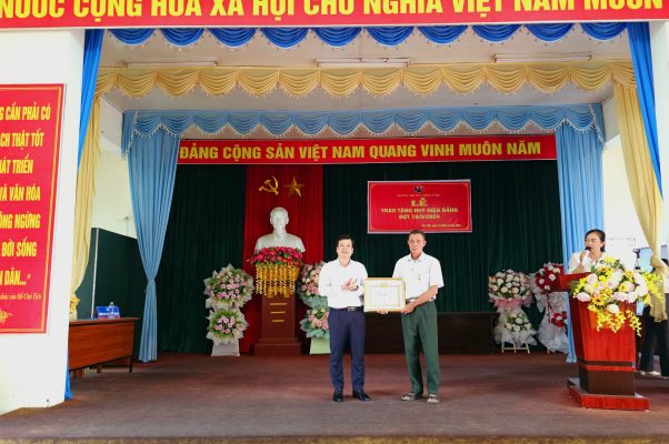 Tại Đảng bộ xã Trung Giáp, đồng chí Hán Trung Kết – Ủy viên BTV Huyện ủy, Chủ tịch Ủy ban MTTQ huyện trao Huy hiệu 50 Đảng cho cho đồng chí Đào Văn Lợi.đảng viên sinh hoạt tại Chi bộ 3.