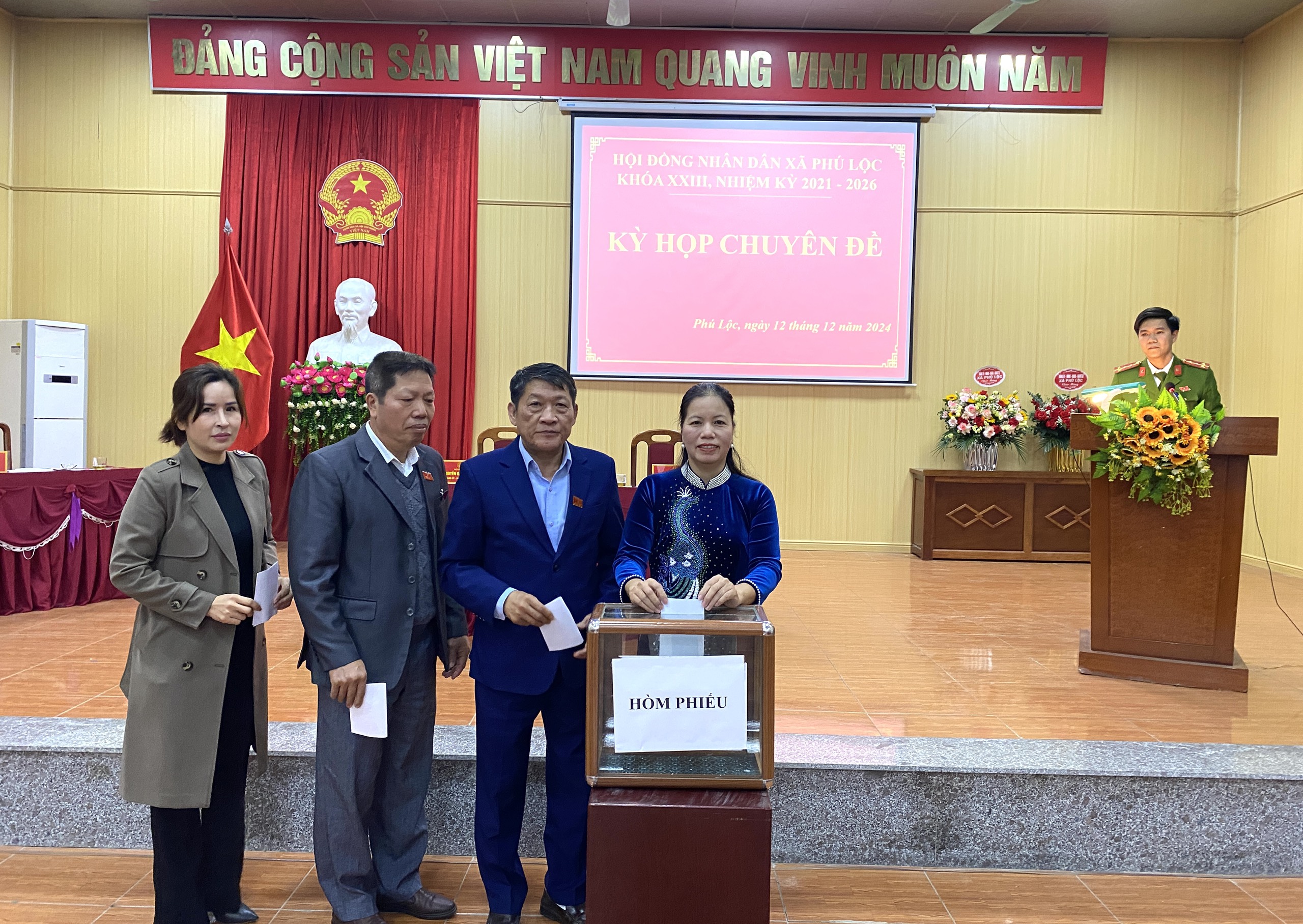 Tại kỳ họp, HĐND xã Phú Lộc đã biểu quyết thông qua Nghị quyết về việc miễn nhiệm chức vụ Chủ tịch UBND Phú Lộc đối với ông Nguyễn Tiến Sơn, do được điều động giữ chức vụ Phó Trưởng phòng Tài nguyên – Môi trường; đồng thời tiến hành bầu bổ sung chức vụ Chủ tịch UBND xã đối với ông Cao Xuân Trường – Phó Bí thư Đảng uỷ (Trước đó, ông Cao Xuân Trường là Phó Bí thư, Chủ tịch UBND xã Bảo Thanh). Với tinh thần dân chủ, tập trung, các đại biểu HĐND xã Phú Lộc đã nhất trí bầu ông Cao Xuân Trường giữ chức vụ Chủ tịch UBND xã Phú Lộc, nhiệm kỳ 2021 – 2026, với số phiếu đạt 100%.