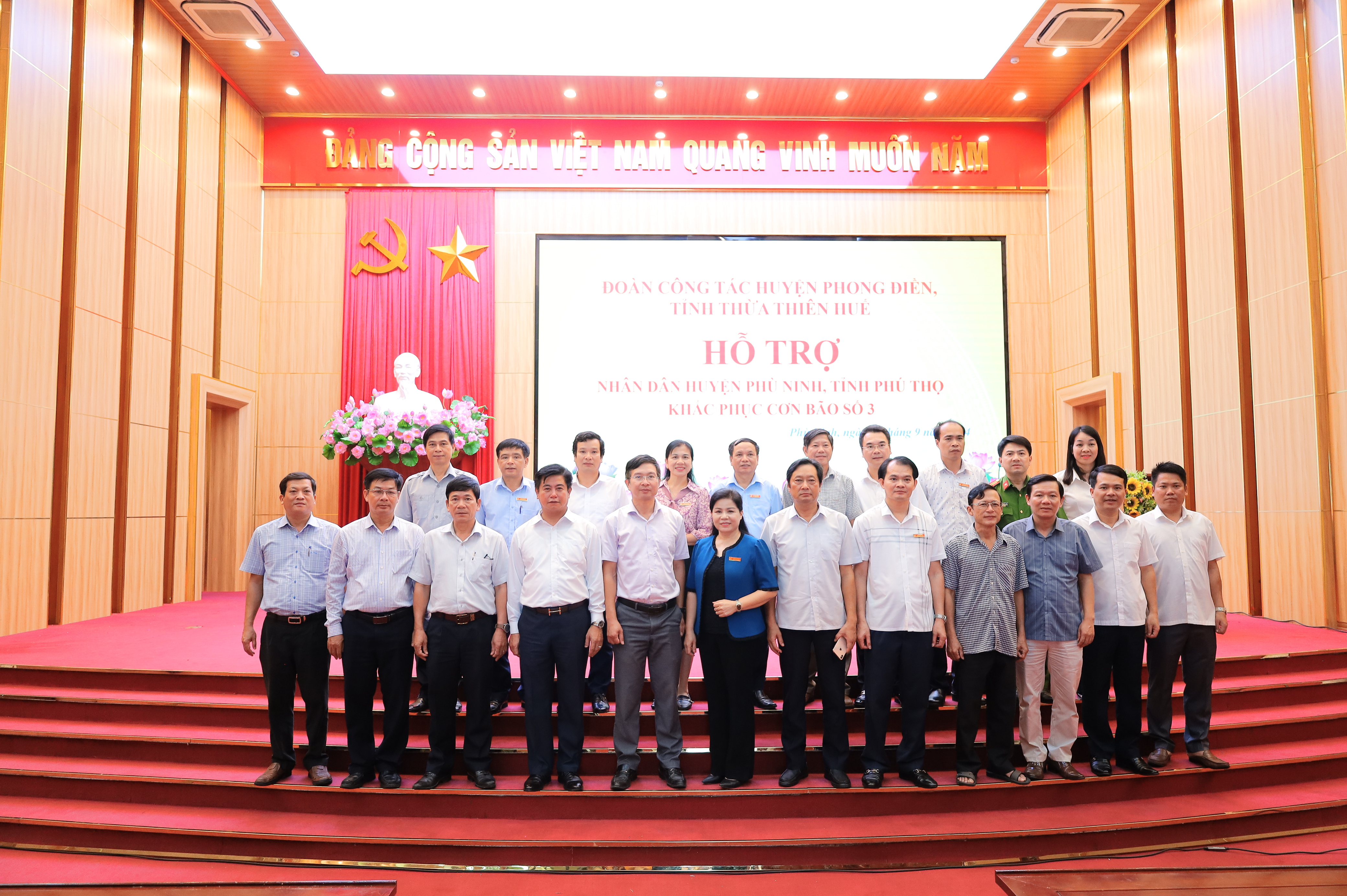 đoàn công tác của huyện Phong Điền, tỉnh Thừa Thiên Huế trao hỗ trợ 300 triệu đồng ủng hộ cho huyện Phù Ninh khắc phục thiệt hại do bão số 3.