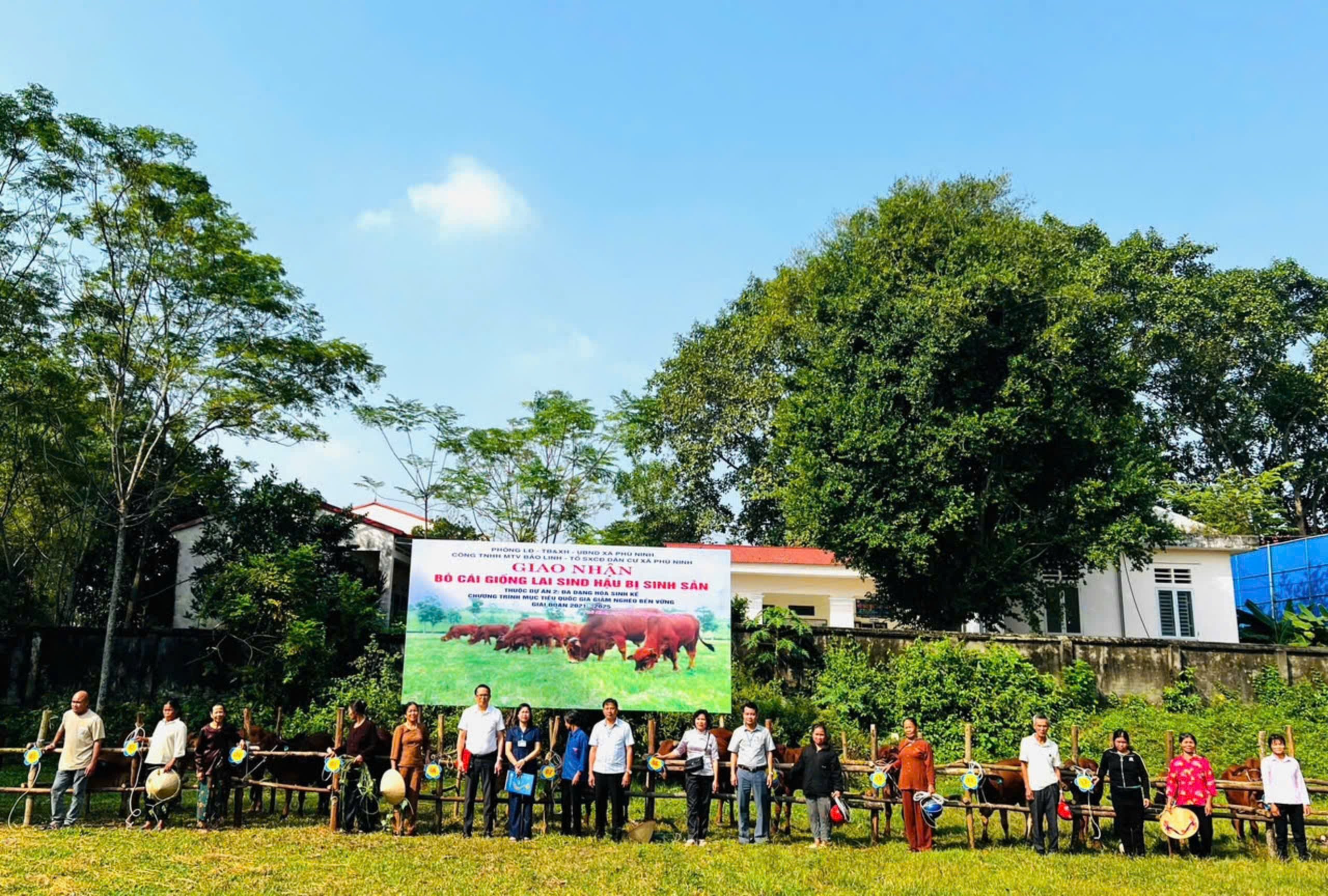 Tại xã Phù Ninh: tổ chức giao nhận 14 con bò cái giống Lai sind hậu bị sinh sản và thức ăn hỗn hợp cho tổ sản xuất cộng đồng dân cư xã Phù Ninh (07 thành viên là người thuộc hộ nghèo, 04 thành viên là người thuộc hộ cận nghèo, 03 thành viên là hộ mới thoát nghèo (trong vòng 36 tháng).