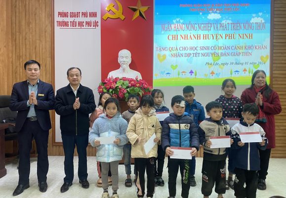 Tại buổi trao quà, Ngân hàng Agribank chi nhánh huyện Phù Ninh đã trao tặng 40 suất quà cho các em học sinh trường mầm non Phú Lộc, 20 suất quà cho các em học sinh trường tiểu học Phú Lộc, mỗi suất trị giá 500 ngàn đồng.