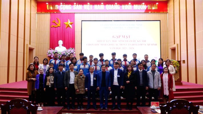 Tại buổi gặp mặt, lãnh đạo UBND huyện, Phòng GD – ĐT đã trao quà động viên học sinh và các thầy cô giáo trong đội tuyển.