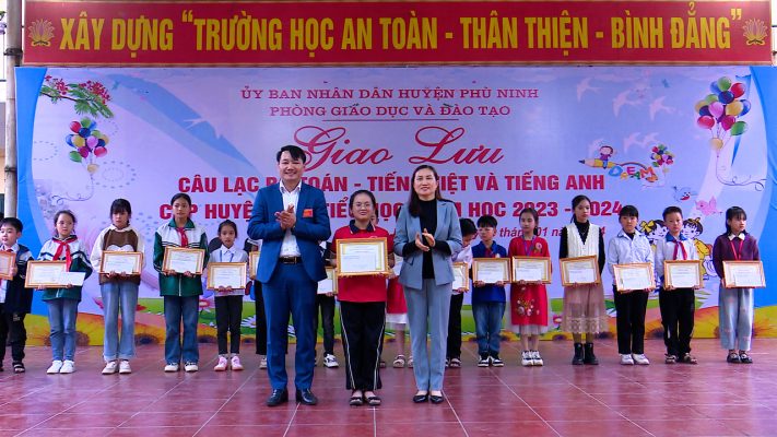(Phù Ninh)-Ngày 18.1.2024, Phòng GD-ĐT huyện Phù Ninh đã tổ chức giao lưu các câu lạc bộ Toán – Tiếng Việt và Tiếng Anh dành cho học sinh tiểu học năm học 2023-2024. Tới dự buổi giao lưu có lãnh đạo phòng GD&ĐT huyện; Ban giám hiệu, các thầy cô giáo các trường tiểu học; Ban tổ chức, ban giám khảo, học sinh các câu lạc bộ và đông đảo phụ huynh học sinh các trường tiểu học trên địa bàn huyện.
