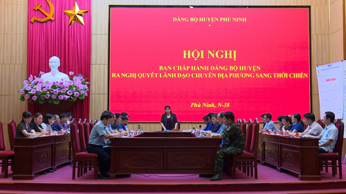 (Phù Ninh)- Để chuẩn bị cho cuộc diễn tập khu vực phòng thủ huyện vào tháng 10/2024. Ngày 17/9/2024, Ban Chỉ đạo diễn tập khu vực phòng thủ huyện Phù Ninh đã tổ chức luyện tập cho các đồng chí trong Ban chỉ đạo Diễn tập khu vực phòng thủ huyện năm 2024. Tới dự có Đại tá Nguyễn Trọng Liễu - Chủ nhiệm Chính trị, Bộ CHQS tỉnh Phú Thọ; Thượng tá Nông Quốc Tuấn - Phó Tham mưu trưởng, Bộ CHQS tỉnh; Thượng tá Phạm Trung Du - Trưởng ban Tác huấn, Bộ CHQS tỉnh; Thượng tá Lý Mạnh Tưởng - Trưởng ban Tổ chức, Bộ CHQS tỉnh Phú Thọ. Về phía huyện Phù Ninh có đồng chí Nguyễn Thị Tố Uyên - Tỉnh ủy viên, Bí thư Huyện ủy, Chủ tịch HĐND huyện; đồng chí Nguyễn Hữu Nhật- Phó bí thư, Chủ tịch UBND huyện; đồng chí Nguyễn Quang Vinh - Phó Bí thư Thường trực Huyện ủy; các đồng chí Ủy viên BTV Huyện ủy, các đồng chí thành viên Ban Tổ chức thực hiện nhiệm vụ diễn tập huyện, lãnh đạo các cơ quan, đơn vị và các tổ chức chính trị - xã hội huyện; lực lượng vũ trang huyện.