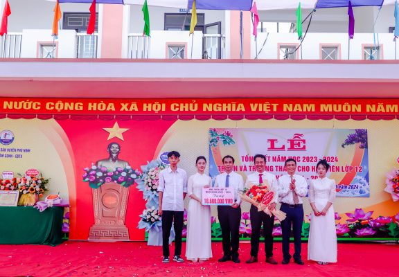 (Phù Ninh)- Chiều ngày 03/6/2024, Trung tâm Giáo dục nghề nghiệp – Giáo dục thường xuyên (GDNN – GDTX) huyện Phù Ninh tổ chức Lễ tổng kết năm học 2023-2024, tri ân và trưởng thành cho học viên lớp 12, niên khóa 2021-2024. Dự buổi lễ có đồng chí Đỗ Thanh – Phó Giám đốc Sở Giáo dục và Đào tạo. Về phía huyện Phù Ninh có đồng chí Nguyễn Quang Vinh – Phó Bí thư Thường trực Huyện uỷ, đồng chí Trịnh Đức Lai – Uỷ viên BTV Huyện uỷ, Phó Chủ tịch UBND huyện, đồng chí Ngô Quang Chính – Uỷ viên BTV Huyện uỷ, Phó Chủ tịch HĐND huyện, lãnh đạo một số phòng, ban, đơn vị, Ban giám đóc, các thầy cô giáo, các em học viên và đại diện phụ huynh học viên của Trung tâm GDNN – GDTX huyện.
