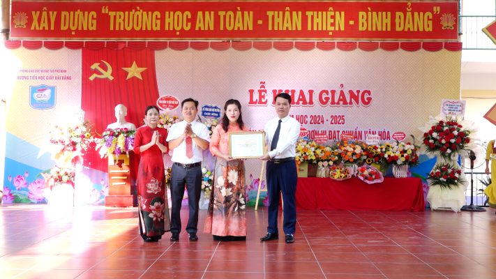 (Phù Ninh)- Sáng ngày 5.9.2024, đồng chí Ngô Quang Chính – Ủy viên BTV Huyện ủy, Phó Chủ tịch HĐND huyện đã dự Lễ khai giảng năm học mới 2024-2025 và tặng hoa chúc mừng thầy và trò trường Tiểu học Giấy Bãi Bằng. Cùng dự có đại diện lãnh đạo Văn phòng HĐND và UBND huyện; đại diện cấp ủy, chính quyền thị trấn Phong Châu; đại diện Hội cha mẹ học sinh và toàn thể cán bộ, giáo viên, nhân viên và học sinh của nhà trường.