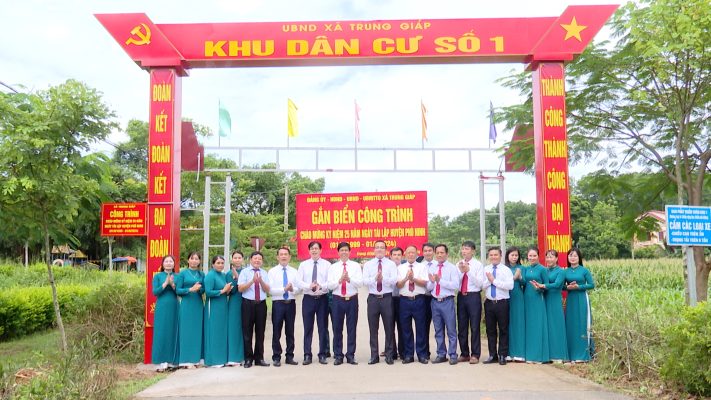 (Phù Ninh)- Thiết thực hưởng ứng các hoạt động chào mừng kỷ niệm 25 năm ngày tái lập huyện Phù Ninh ( 01/9/1999 – 01/9/2024), Ngày 21.8.2024, UBND xã Trung Giáp long trọng tổ chức gắn biển công trình nhà một cửa và 05 cổng chào khu dân cư. Dự lễ gắn biển có đồng chí Hán Trung Kết – Ủy viên BTV Huyện ủy, Chủ tịch Ủy ban MTTQ huyện; Lãnh đạo cấp ủy, chính quyền địa phương xã Trung Giáp.