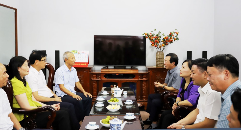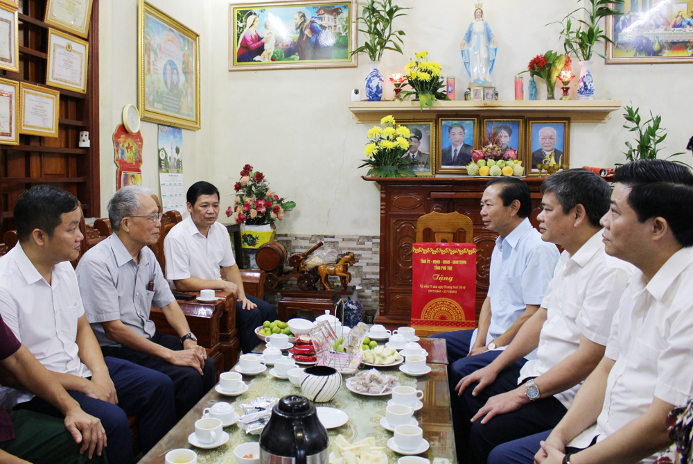 Chủ nhiệm Ủy ban Kiểm tra Tỉnh ủy Đinh Công Thực và đoàn công tác thăm hỏi ông Nguyễn Quang Khải - gia đình có 2 đời liệt sĩ ở khu Tân Trung, thị trấn Lâm Thao