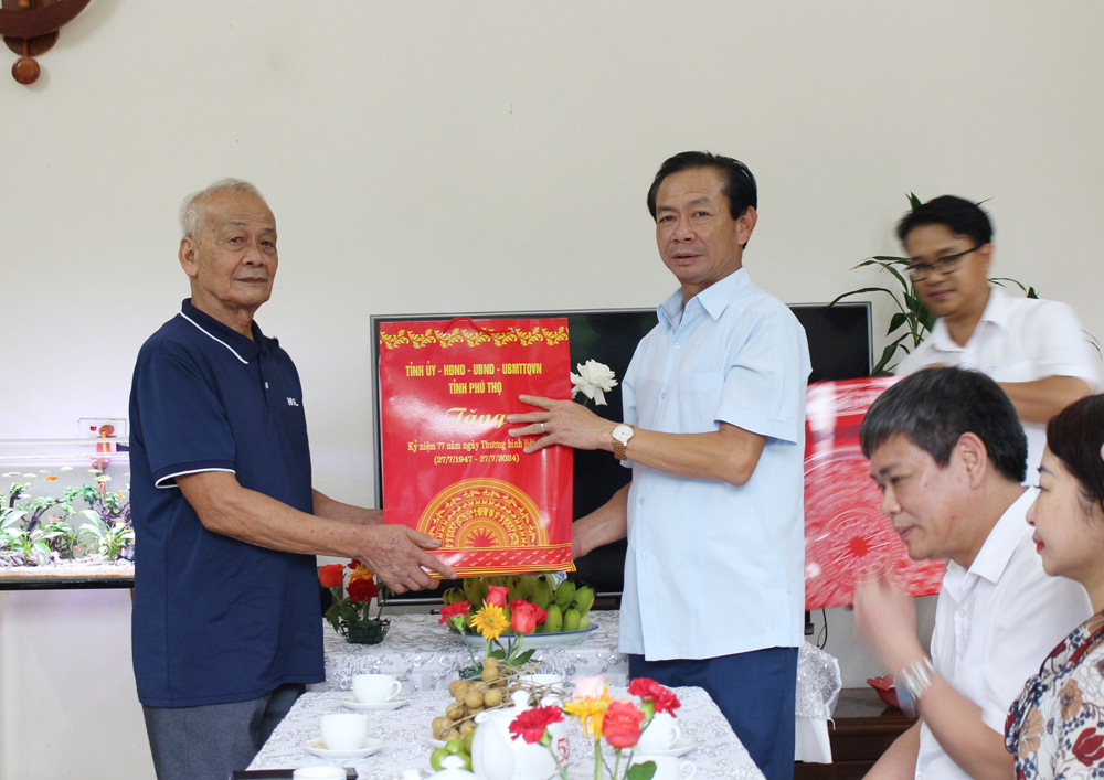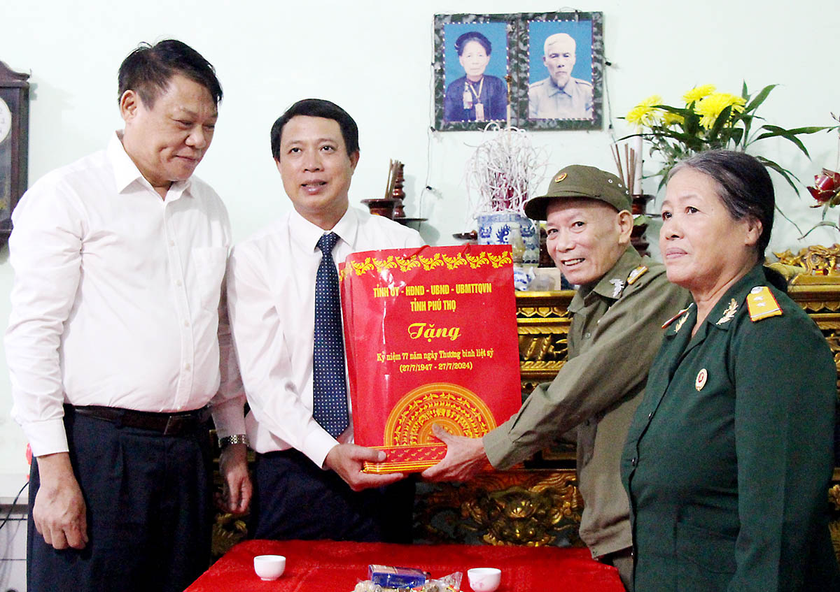 Ngày 23/7/2024, nhân kỷ niệm 77 năm Ngày Thương binh - Liệt sĩ (27/7/1947 - 27/7/2024), các đồng chí: Bùi Văn Quang - Phó Bí thư Tỉnh ủy, Chủ tịch UBND tỉnh; Phùng Khánh Tài - Phó Bí thư Thường trực Tỉnh ủy cùng các đồng chí trong BTV Tỉnh ủy đến thăm, tặng quà người có công, gia đình chính sách trên địa bàn các huyện: Thanh Thủy, Phù Ninh, Thanh Sơn, Lâm Thao, Tân Sơn, Đoan Hùng.