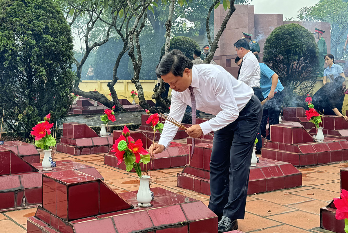Phó Chủ tịch UBND tỉnh Nguyễn Thanh Hải thắp hương tưởng niệm các anh hùng liệt sĩ tại Nghĩa trang Liệt sĩ huyện Yên Lập