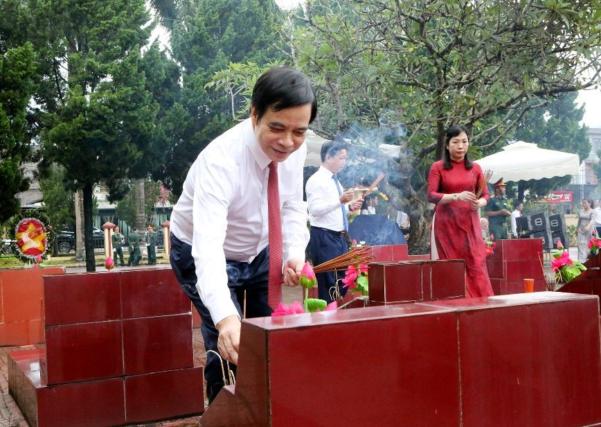 Trước đó, Phó Bí thư Thường trực Tỉnh ủy Phùng Khánh Tài cùng các đại biểu đã dâng hương tưởng niệm các anh hùng liệt sĩ tại Đài tưởng niệm các Anh hùng liệt sĩ huyện Phù Ninh.