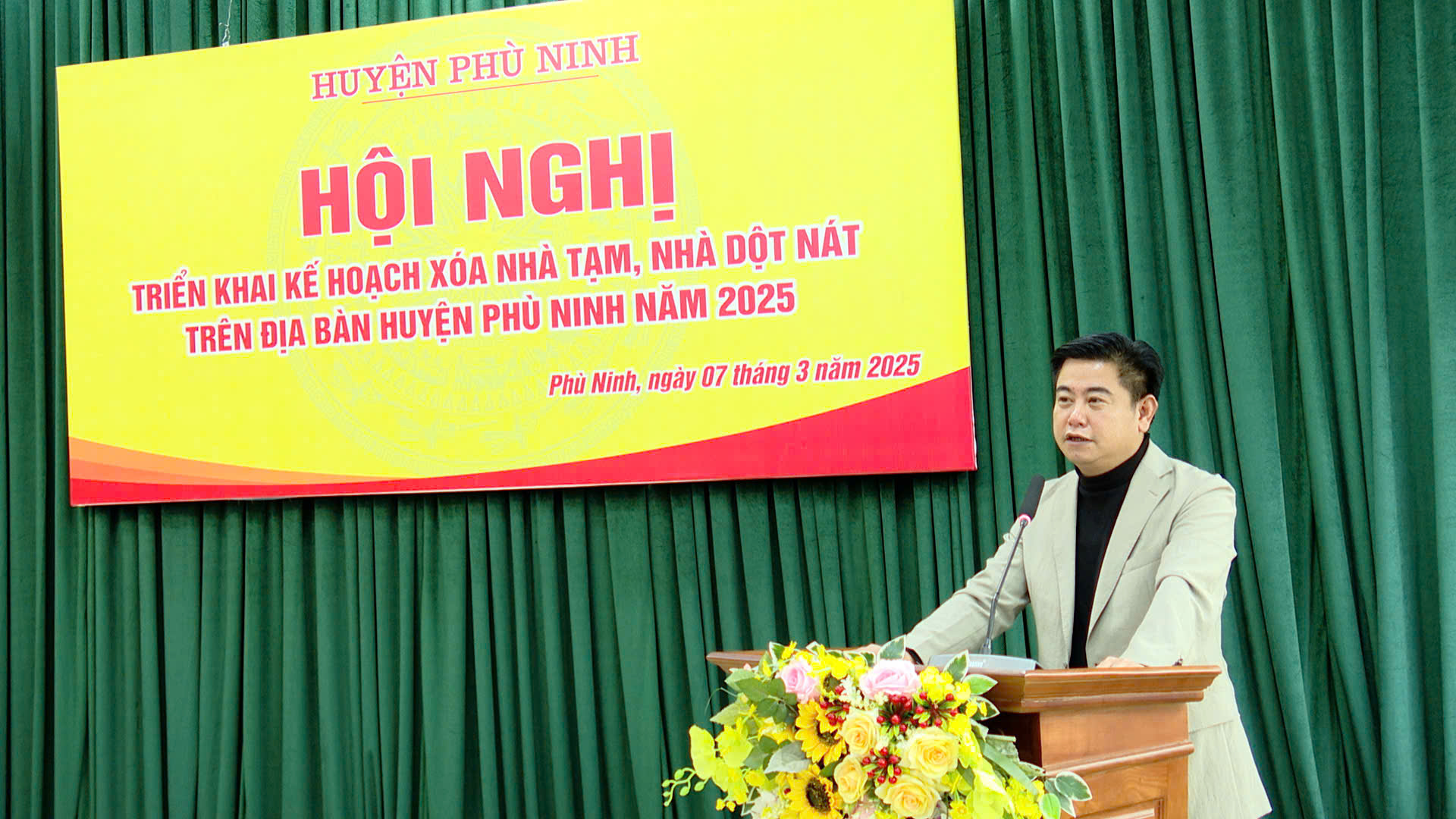 (Phù Ninh)- Sáng ngày 07/03/2025, Ban Chỉ đạo (BCĐ) triển khai xóa nhà tạm, nhà dột nát huyện Phù Ninh tổ chức họp triển khai công tác xóa nhà tạm, nhà dột nát trên địa bàn huyện năm 2025; Thông qua dự thảo kế hoạch, quy chế tổ chức và hoạt động; Báo cáo tiến độ và triển khai nhiệm vụ xóa nhà tạm, nhà dột nát trên địa bàn huyện năm 2025. Đồng chí Nguyễn Hữu Nhật - Phó Bí thư Huyện ủy, Chủ tịch UBND huyện, Trưởng BCĐ chủ trì cuộc họp. Tham dự có các đồng chí Ủy viên Ban thường vụ Huyện ủy, Phó Trưởng Ban chỉ đạo: Đồng chí Trịnh Đức Lai – Phó chủ tịch UBND huyện; Đồng chí Hán Trung Kết – Chủ tịch Ủy ban MTTQ huyện; Các đồng chí thành viên BCĐ triển khai xóa nhà tạm, nhà dột nát trên địa bàn huyện; Chủ tịch UBND, Ủy ban MTTQ các xã, thị trấn trên địa bàn huyện.
