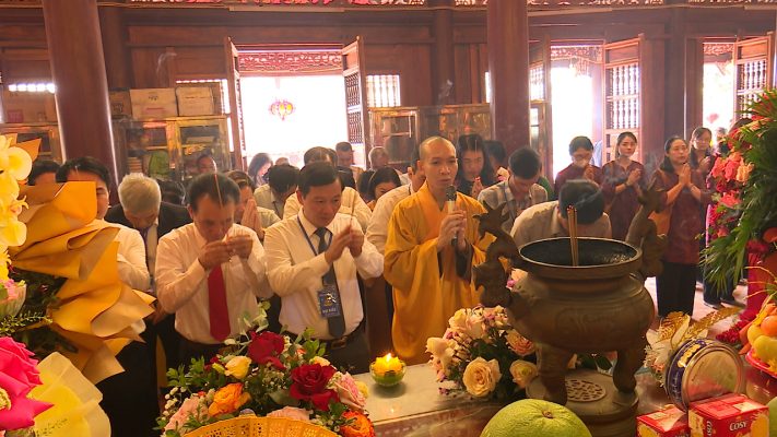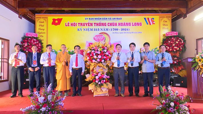 Cũng nhân dịp này, thay mặt lãnh đạo Huyện ủy, HĐND, UBND huyện đã tặng hoa chúc mừng Lễ hội truyền thống chùa Hoàng Long, Kỷ niệm 315 năm (1709-2024).