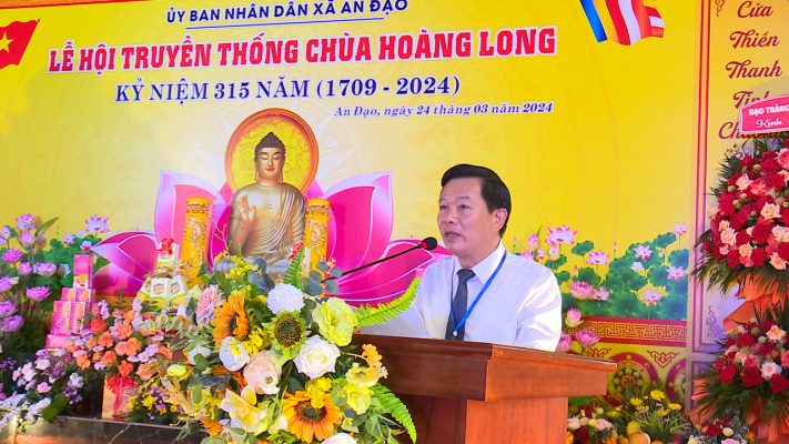 (Phù Ninh) - Trong 2 ngày 23 và 24/3/2024 (tức ngày 14 và 15/2) năm Giáp Thìn, xã An Đạo đã long trọng tổ chức Lễ hội truyền thống chùa Hoàng Long, Kỷ niệm 315 năm (1709 – 2024). Tới dự có đồng chí Ngô Quang Chính – UV BTV Huyện ủy, Phó chủ tịch HĐND huyện, đồng chí Trịnh Đức Lai- UV BTV Huyện ủy, Phó chủ tịch UBND huyện, đồng chí Hán Trung Kết – UV BTV Huyện ủy, Chủ tịch UB MTTQ Việt Nam huyện, đồng chí Lê Kim Đính – UV BTV Huyện ủy, Chủ Nhiệm Ủy ban Kiểm tra Huyện ủy, các đồng chí lãnh đạo đại diện các phòng, ban ngành, các tổ chức chính trị, xã hội, các cơ quan, doanh nghiệp đóng trên địa bàn huyện Phù Ninh, xã An Đạo cùng đông đảo bà con nhân dân, các tăng, ni, phật tử và du khách thập phương đã về dự.