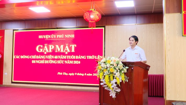 Phát biểu tại buổi gặp mặt, Đồng chí Nguyễn Quang Vinh – Phó bí thư Thường trực Huyện ủy vui mừng trước sự cải thiện rõ về mặt sức khỏe và tinh thần của các Đảng viên khi được nghỉ dưỡng sức ở đây. Bên cạnh đó đồng chí đã khái quát tình hình phát triển kinh tế xã hội, an ninh quốc phòng của huyện trong thời gian qua. Theo đó, với quyết tâm chính trị cao, Đảng bộ huyện Phù Ninh đã lãnh đạo các cấp ủy, chính quyền thực hiện đạt nhiều kết quả nổi bật. Công tác xây dựng Đảng được chỉ đạo kịp thời, hiệu quả, có nhiều đổi mới, linh hoạt, phù hợp với thực tế địa phương. Phát huy vai trò tiền phong, gương mẫu của cán bộ, đảng viên, đặc biệt là người đứng đầu trong thực hiện nhiệm vụ. Tình hình tư tưởng, dư luận xã hội trong nhân dân ổn định, tin tưởng, đồng thuận, ủng hộ thực hiện các nhiệm vụ chính trị của địa phương; các mô hình học tập và làm theo tư tưởng, đạo đức, phong cách Hồ Chí Minh ngày càng rộng khắp trên các lĩnh vực, có sức lan tỏa mạnh mẽ và ý nghĩa sâu sắc. Hiện nay đã có 2 xã đạt chuẩn NTM nâng cao, Huyện Phù Ninh có bản đã hoàn thành các tiêu chí xây dựng huyện đạt chuẩn nông thôn mới vào năm 2025…Có được những kết quả nêu trên là có sự lãnh đạo, chỉ đạo đúng đắn, kịp thời của Huyện ủy, sự vào cuộc quyết liệt của chính quyền, sự cố gắng của cộng đồng doanh nghiệp và toàn thể nhân dân trong huyện, trong đó có sự đóng góp rất quan trọng, tích cực của các đồng chí đảng viên đã nghỉ hưu trên địa bàn huyện.