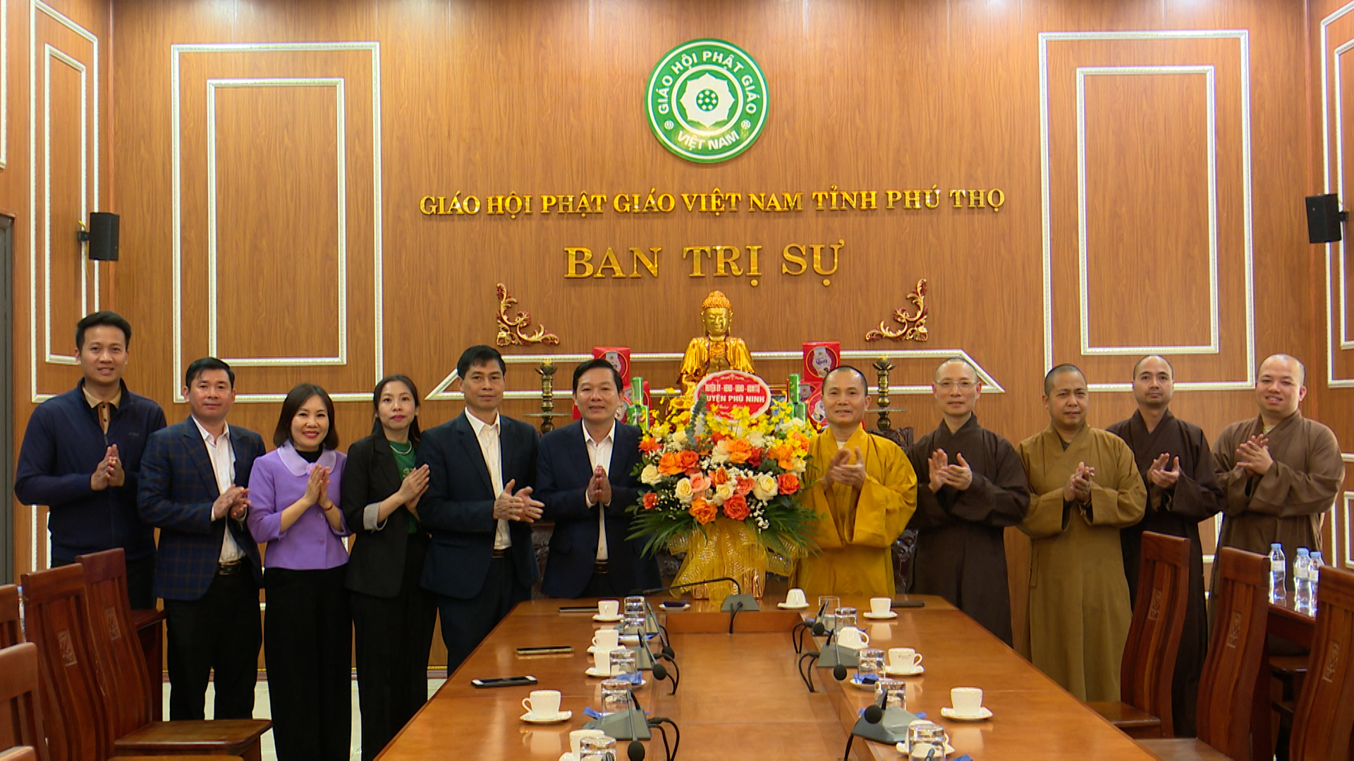 (Phù Ninh)- Nhân dịp đón Xuân Ất Tỵ, năm 2025. Chiều nay 21/01, Đoàn công tác của huyện Phù Ninh do đồng chí Trịnh Đức Lai – UV BTV Huyện ủy, Phó Chủ tịch UBND huyện làm Trưởng đoàn đã đi thăm chúc Tết Ban Trị sự Giáo hội Phật giáo (GHPG) Việt Nam tỉnh Phú Thọ, Ban Trị sự Giáo hội Phật giáo Việt Nam huyện Phù Ninh và các chùa trên địa bàn huyện. Cùng đi có đồng chí Hán Trung Kết - UV BTV Huyện ủy, Chủ tịch UB MTTQ Việt Nam huyện; các đồng chí Lãnh đạo Ban Dân vận Huyện uỷ, Phòng Nội vụ, Văn phòng HĐND&UBND, Trung tâm VHTTDL&TT huyện.