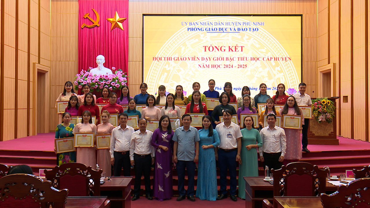Tại hội nghị tổng kết, có 71/71 giáo viên được công nhận danh hiệu giáo viên dạy giỏi tiểu học cấp huyện năm học 2024 - 2025, chiếm tỷ lệ 100%. Trưởng phòng GD&ĐT tặng Giấy khen cho 30 giáo viên đạt thành tích xuất sắc tại Hội thi giáo viên dạy giỏi tiểu học cấp huyện năm học 2024 – 2025. Đồng thời chọn cử 10 giáo viên tham dự Hội thi giáo viên dạy giỏi tiểu học cấp tỉnh năm học 2024 – 2025.