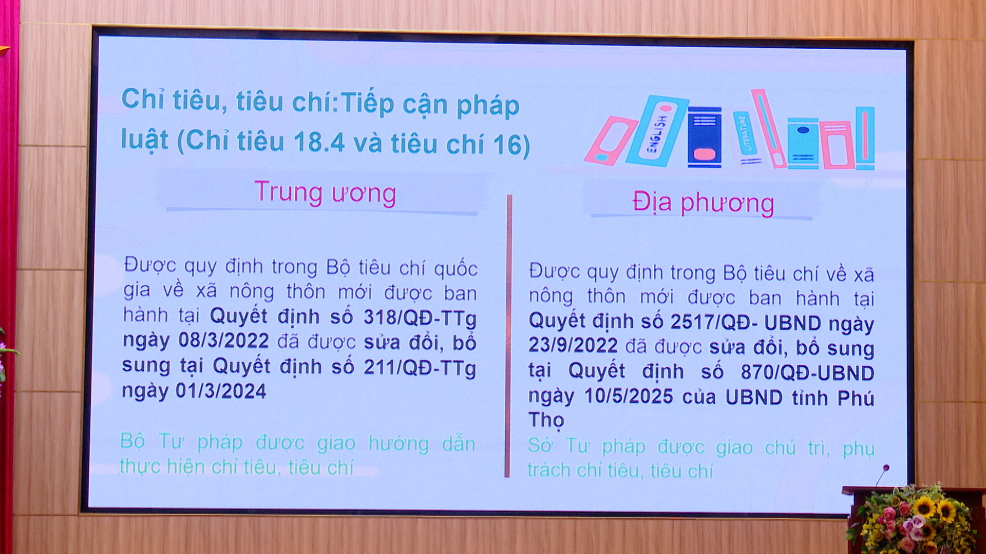 (Phù Ninh)- Ngày 25.10.2024, UBND huyện Phù Ninh tổ chức hội nghị tập huấn nghiệp vụ công tác chuẩn tiếp cận pháp luật và các tiêu chí tiếp cận pháp luật trong xây dựng nông thôn mới; phổ biến giáo dục pháp luật năm 2024. Tới dự và trực tiếp truyền đạt có đại diện phòng Phổ biến GDPL, sở Tư pháp tỉnh; lãnh đạo phòng TN&MT; Các đồng chí thành viên Hội đồng đánh giá chuẩn tiếp cận pháp luật huyện; lãnh đạo UBND, công chức tư pháp – hộ tịch; tổ trưởng tổ hòa giải các xã: Phú Lộc, Phù Ninh; Tiên Du, Phú Nham, An Đạo, Bình Phú, Trung Giáp và Thị trấn Phong Châu.